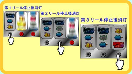 第1リール停止後,第2リール停止後,及び第3リール停止後バックライトが消灯。